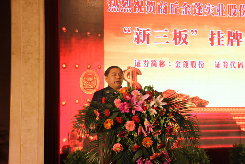 今天,金蓬实业在新三板成功挂牌,标志着公司踏入了资本市场的快车道,走向国家的资本舞台。公司在今后将进一步按照现代企业制度和上市公司的要求,规范 运作、信息公开、接受证监部门和广大投资者的监督,以持续、稳定、健康发展的良好态势,回报股东,回报客户,回报社会!